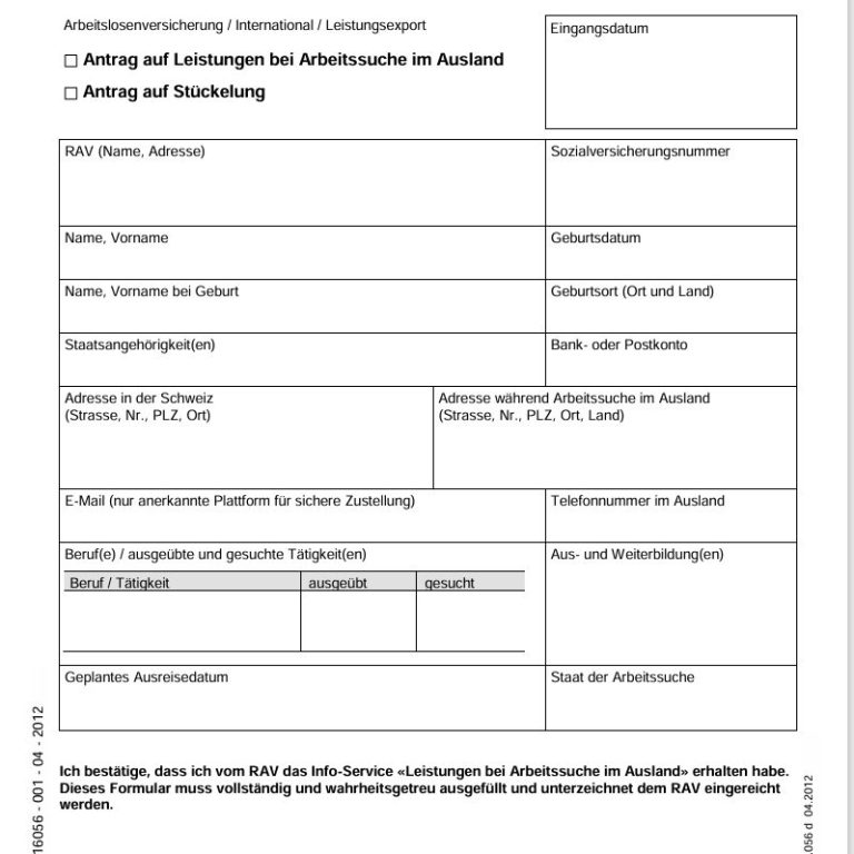 Formulář získáte na RAV nebo u kantonální Arbeitslosenkasse.